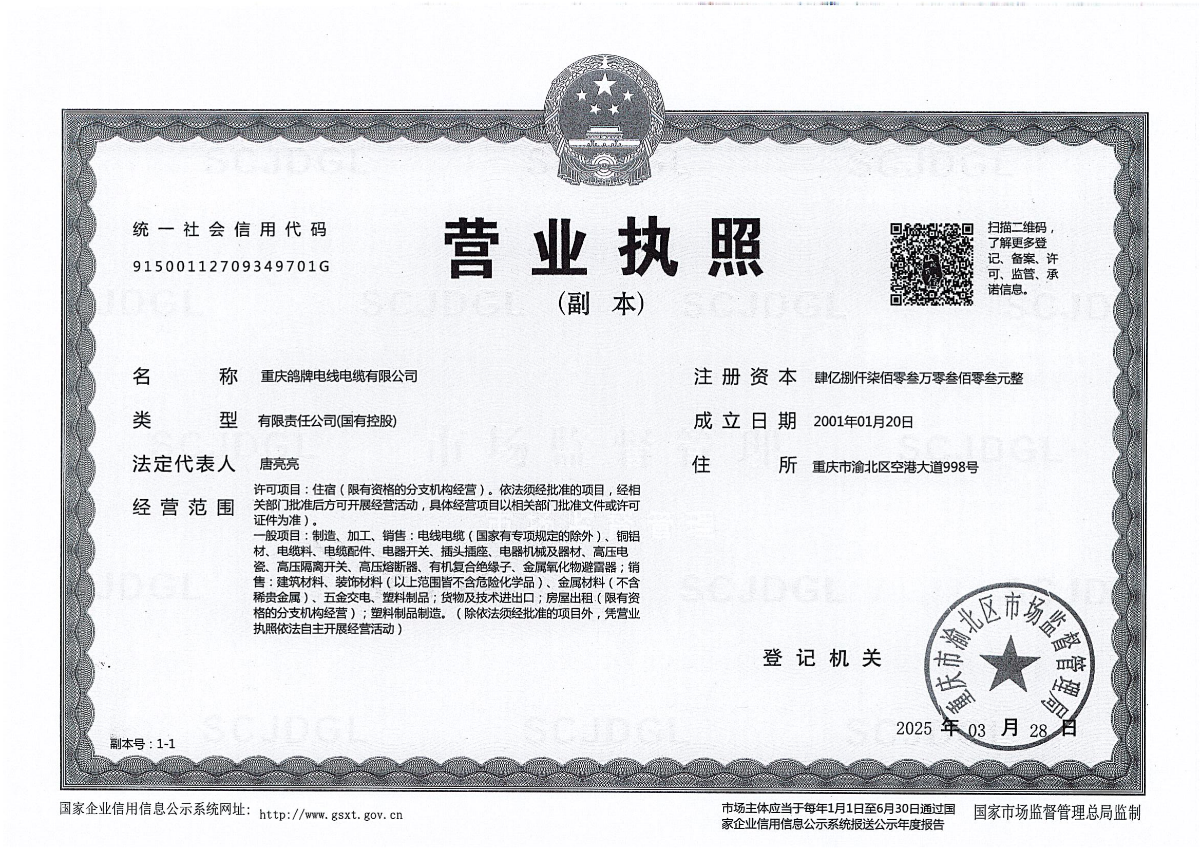 目前,公司鴿牌系列產(chǎn)品被評為“國家質(zhì)量AA信譽(yù)資質(zhì)”、“重慶名牌產(chǎn)品”;鴿牌公司被授予“全國五一勞動(dòng)獎(jiǎng)狀”、“國家高新技術(shù)企業(yè)”、“全國工業(yè)品牌培育示范企業(yè)”、“國家級綠色工廠”、“重慶老字號”等多項(xiàng)稱號,蟬聯(lián)11屆“中國線纜產(chǎn)業(yè)最具競爭力企業(yè)100強(qiáng)”,連續(xù)14年入選“重慶制造業(yè)企業(yè)100強(qiáng)”,連續(xù)17年入選“重慶企業(yè)100強(qiáng)”。